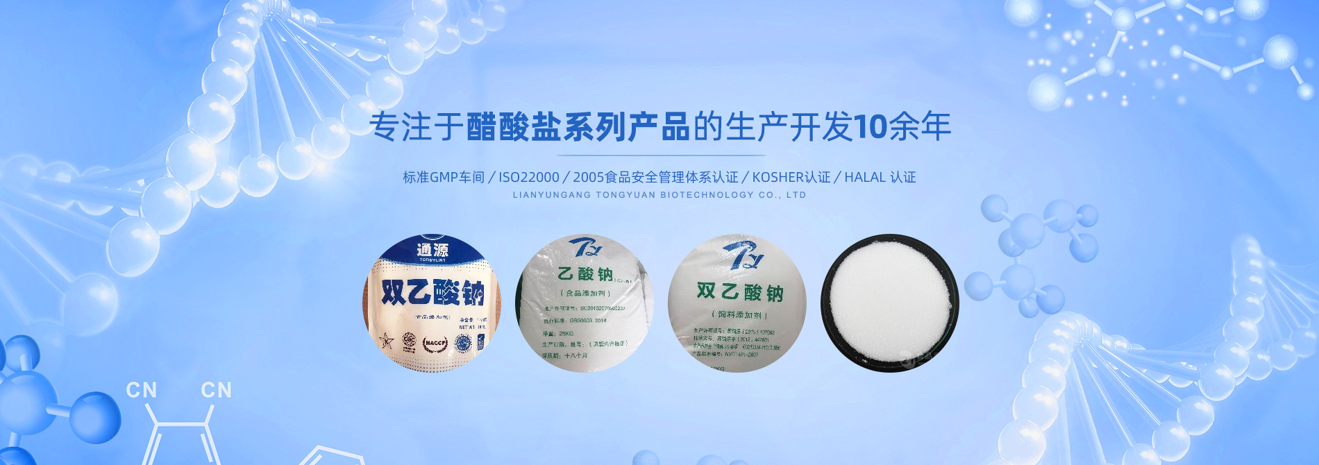 連云港市通源生物科技有限公司 是生產(chǎn)雙乙酸鈉、無(wú)水醋酸鈉、三水醋酸鈉、醋酸鉀、乙酸鈉、丙酸鈉、丙酸鈣和氯化鉀等系類醋酸鹽產(chǎn)品的專業(yè)制造商。公司專注于醋酸鹽系列產(chǎn)品的生產(chǎn)開(kāi)發(fā)10余年,是國(guó)內(nèi)專業(yè)醋酸酸鹽產(chǎn)品生產(chǎn)基地。 目前,我們已和全球30多個(gè)國(guó)家和地區(qū)建立長(zhǎng)期的業(yè)務(wù)合作關(guān)系,是中國(guó)較大的雙乙酸鈉生產(chǎn)商和出口商之一。作為中國(guó)食品添加劑和配料協(xié)會(huì)理事單位,通源公司已建成標(biāo)準(zhǔn)GMP車(chē)間5000余平方米,通過(guò)了ISO22000:2005食品安全管理體系認(rèn)證、KOSHER認(rèn)證、HALAL 認(rèn)證等,這些都是我們提供高質(zhì)量產(chǎn)品和優(yōu)良服務(wù)的前提和確保。 生產(chǎn)出色產(chǎn)品,提供優(yōu)良服務(wù),滿足顧客需要,是我們努力的目標(biāo)。愿和我們的朋友們攜手,共...